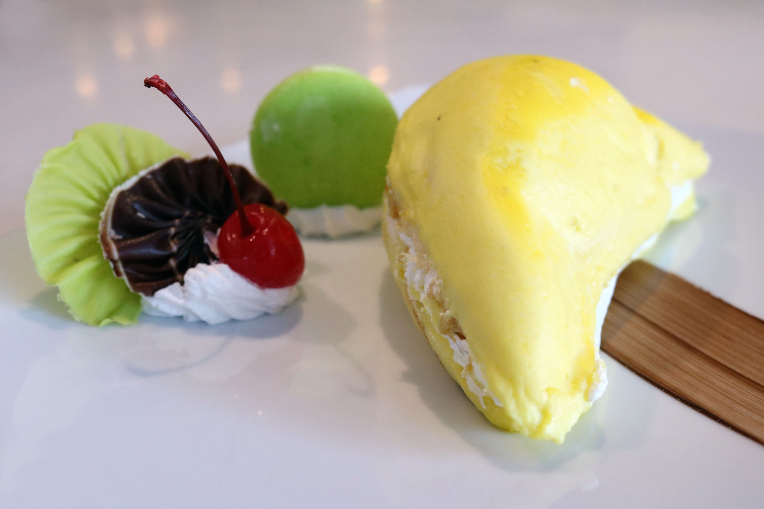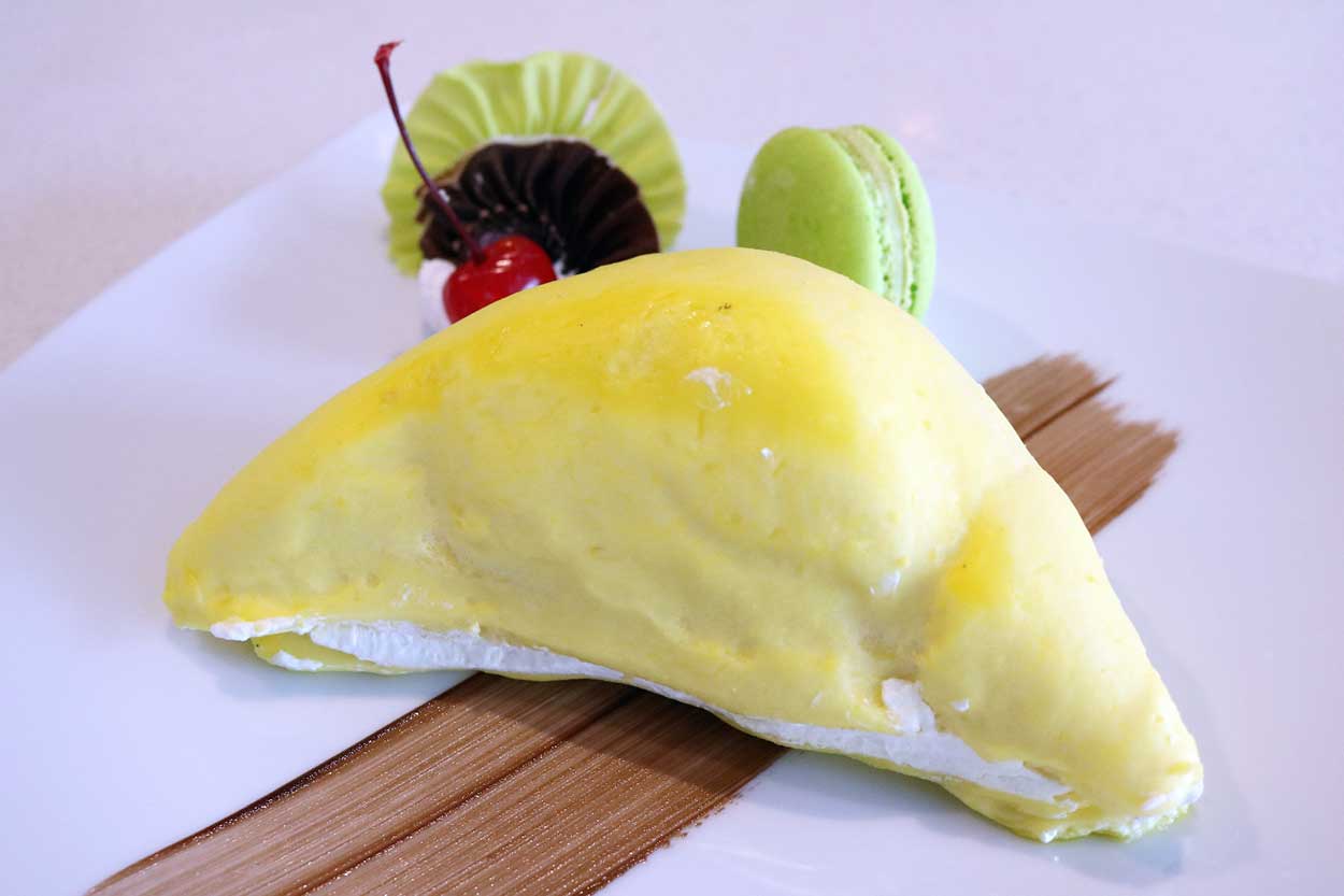 โรงแรมดวงตะวัน เชียงใหม่ ขอเอาใจสาวกทุเรียนทั้งหลาย ด้วยการนำเอา ทุเรียน ราชาแห่งผลไม้ ที่มีกลิ่นหอมเย้ายวนใจ รสหวานละมุน มาปรุงเป็นเบเกอร์รี่ เอาใจท่านที่ชอบเค้ก ขอนำเสนอ “มูสเค้ก ทุเรียน” ให้ลองชิม โดยเชฟนำเนื้อทุเรียนหมอนทองสดๆ มาเป็นส่วนผสมหลัก และเลือกวัตถุดับชั้นดี มาปรุงเป็น มูสเค้กทุเรียน ที่มีกลิ่นและเนื้อทุเรียนให้ได้ฟิน คุณจะได้กลิ่นหอมเย้ายวนใจ ของทุเรียนหมอนทอง รสหวานละมุน นุ่มลิ้น แทบละลายในปาก พร้อมเสิร์ฟ