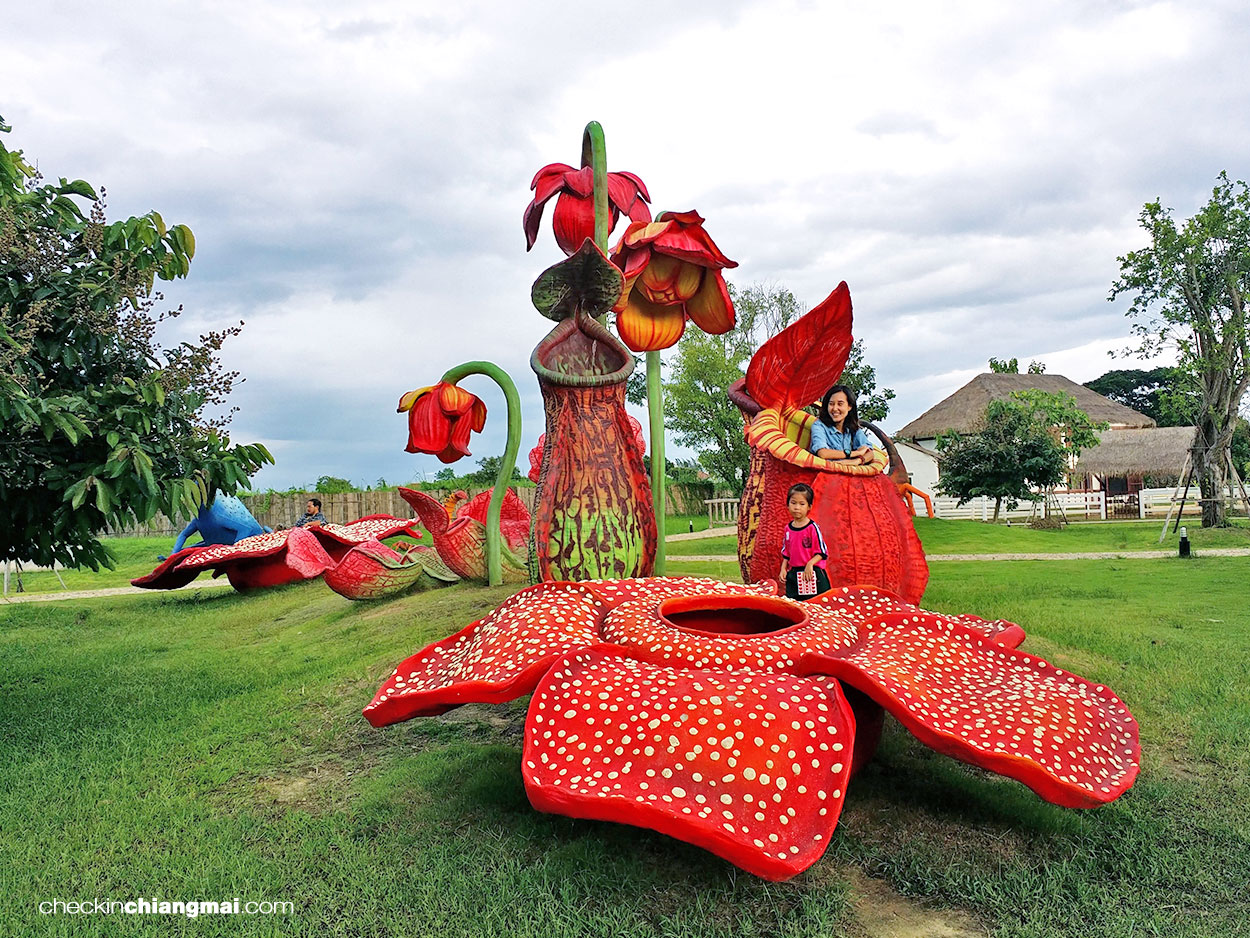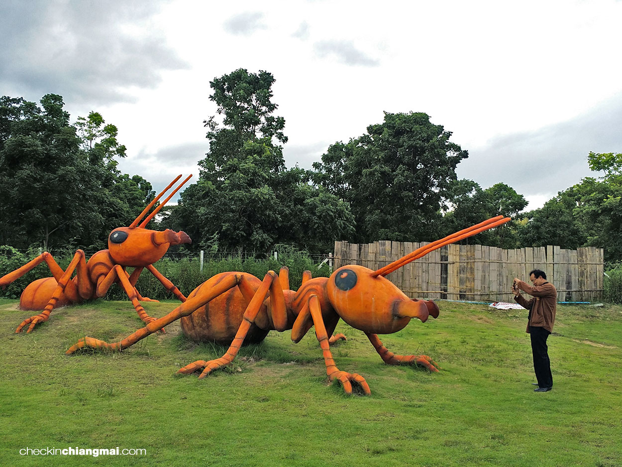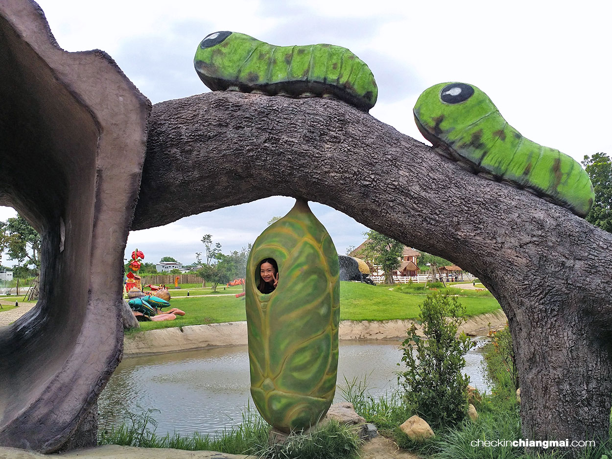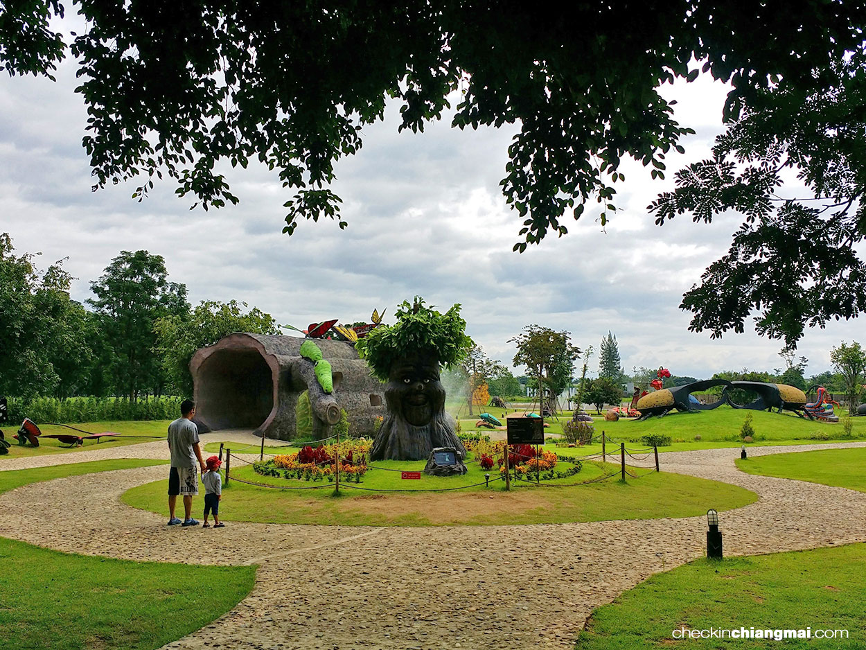 จากประตูด้านหน้าเข้ามาจะเห็นต้นไม้ใหญ่พร้อมกับกิ้งก่ายักษ์สีสันสดใสรอต้อนรับอยู่ จากนั้นก็จะเป็นปู่ต้นไม้ที่ยืนรอทักทายด้วยเสียงพูดหลายภาษา ถัดไปก็จะเป็นสวนผีเสื้อยักษ์กางปีกสีสันสวยงามแล้วจะเข้าสู่ถ้ำต้นไม้ซึ่งมีหนอนเขียวตัวใหญ่อยู่ปากถ้ำพ้นจากถ้ำก็จะเป็นโซนแมลงยักษ์มีทั้งกว่าง, แมงป่อง, ตั๊กแตน, งู, ผึ้ง, กบและไส้เดือนยักษ์ รวมทั้งต้นหม้อข้าวหม้อแกงยักษ์ให้เราเข้าไปถ่ายภาพกลางดอกได้เลย